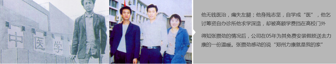 鄭州市力康假肢矯形器有限公司(簡(jiǎn)稱力康),是一家專業(yè)從事假肢矯形器的設(shè)計(jì)、研發(fā)、制作及裝 配的專業(yè)機(jī)構(gòu)。成立于1992年是河南省唯一一家福利企業(yè)。力康下設(shè)業(yè)務(wù)部、技術(shù)部、住院部、康復(fù) 部、售后服務(wù)部,并配有現(xiàn)代化的裝配車間和功能齊全的訓(xùn)練大廳,為殘疾朋友康復(fù)訓(xùn)練提供了可靠 保障??偨?jīng)理穿戴假肢多年,有著豐富的臨床經(jīng)驗(yàn)和親身體會(huì);多年來(lái),力康已為全國(guó)幾十萬(wàn)名殘疾 朋友安裝上舒適、美觀、耐用的假肢和矯形器具,使他們更大限度地恢復(fù)了正常的工作和生活?!爱a(chǎn) 品即人品”的質(zhì)量理念、先進(jìn)的技術(shù)、實(shí)惠的價(jià)格、完善的售后服務(wù)是力康取勝的法寶……